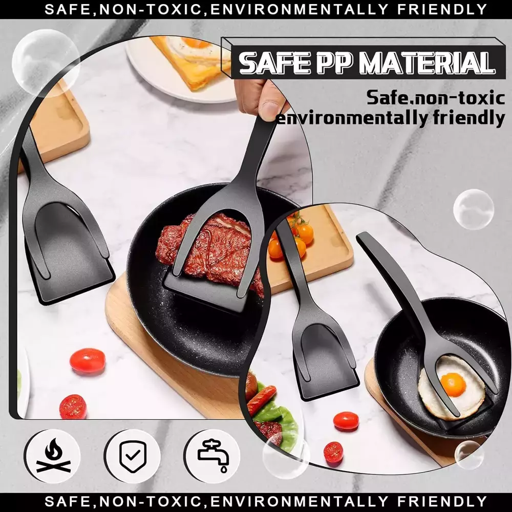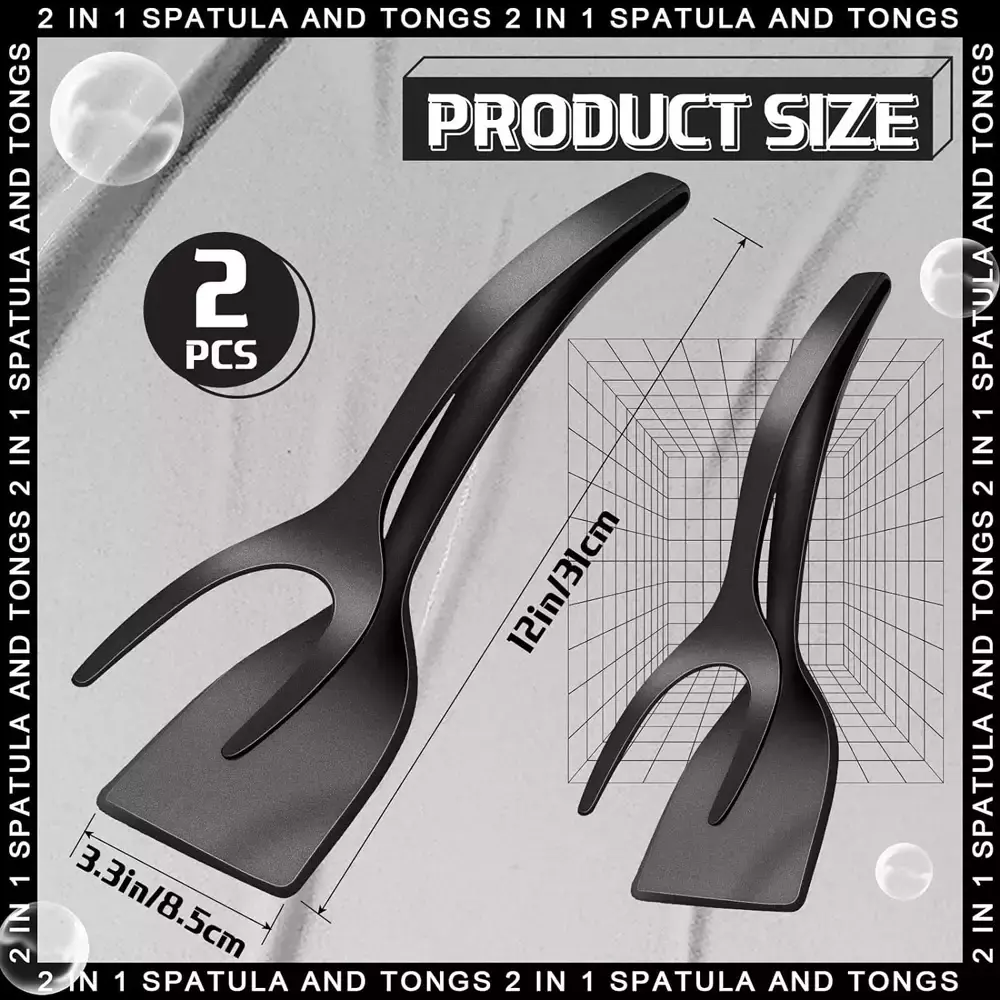 🔹 Diseño 2 en 1: pinza + espátula en un solo utensilio.